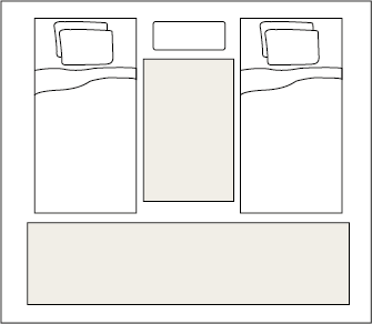 Often two twin-sized beds are used in a single room. For instance, if siblings share the same room or flatmates share an apartment. The best way to design such a space is to lay out a 3'X5' rug between the two twin beds. A 2.5'X7' or 2.5'X10' are common sizes of runner rugs that can also be used in the middle or side of the bed.