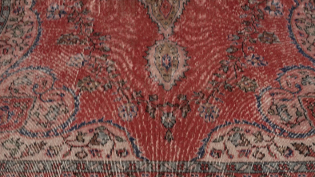 Caeloria is a vintage Turkish rug that was woven in the 1970s by skilled artisans using traditional Turkish weaving techniques. Carefully handmade, it carries the character and beauty of generations-old craftsmanship. Its red color and soft texture make any room feel warm and inviting.