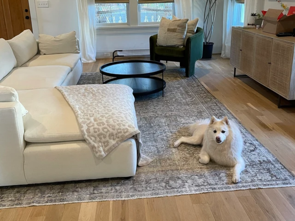 Love this rug! It arrived very quickly and looks exactly as shown in the pictures. Now if I could only get my dog to stop chewing on the rug pad underneath...