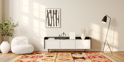 The blend of wool and cotton creates a rug that is both soft and durable. Wool brings warmth and resilience, while cotton adds a light, breathable feel. Together, they offer a comfortable texture and lasting quality that make the rug as practical as it is beautiful.