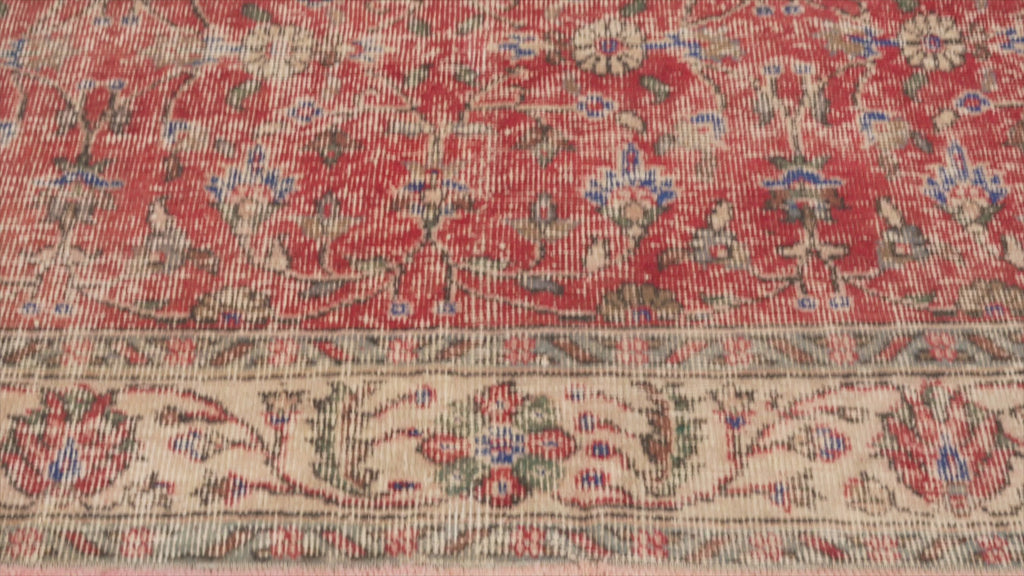 Rosalyndra is a vintage Turkish rug that was woven in the 1970s by skilled artisans using traditional Turkish weaving techniques. Carefully handmade, it carries the character and beauty of generations-old craftsmanship. Its red color and soft texture make any room feel warm and inviting.